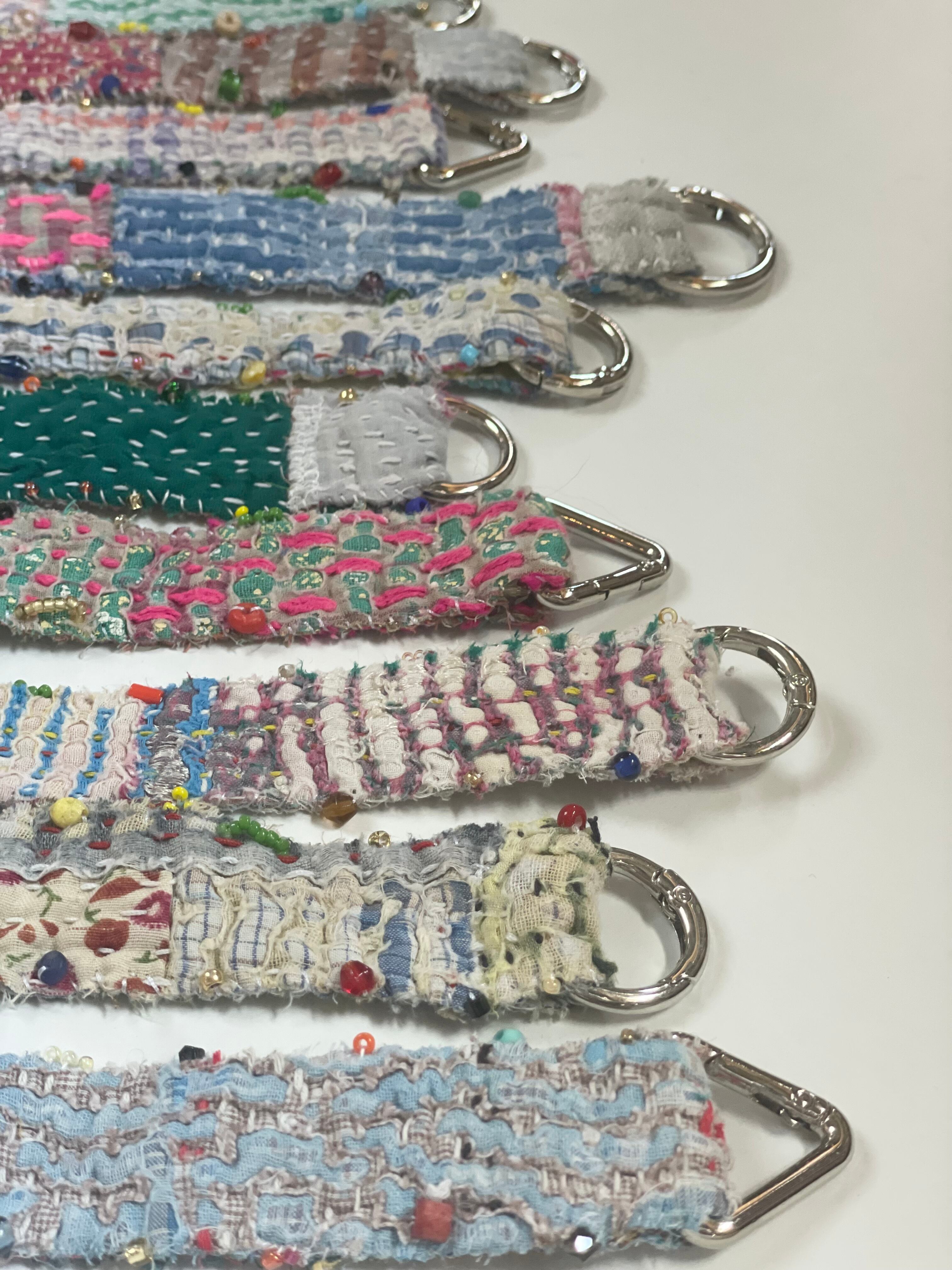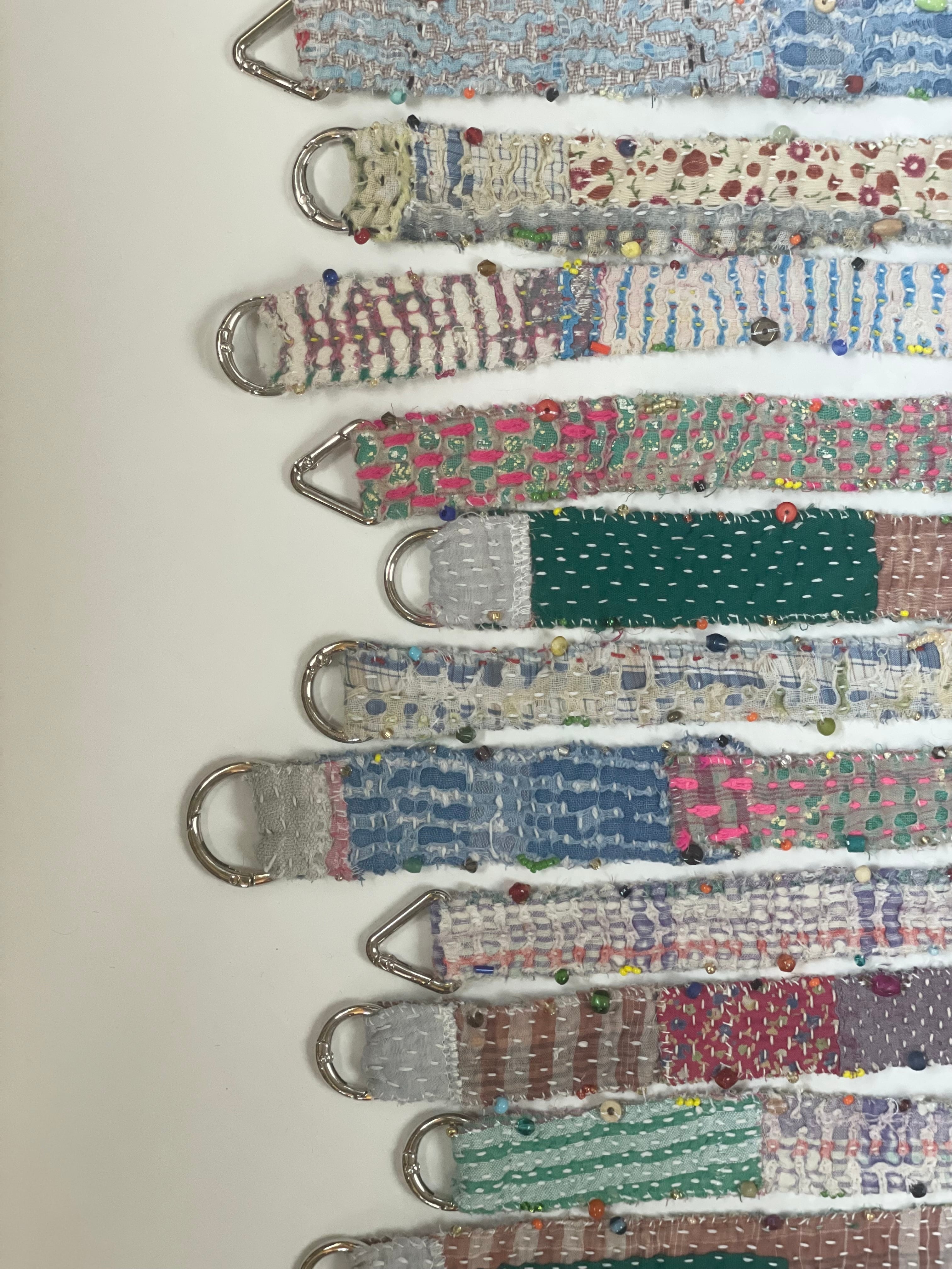インドのラリーキルトの古布を使い、スマホやコンデジに便利な手首にかけるタイプのストラップを作りました。