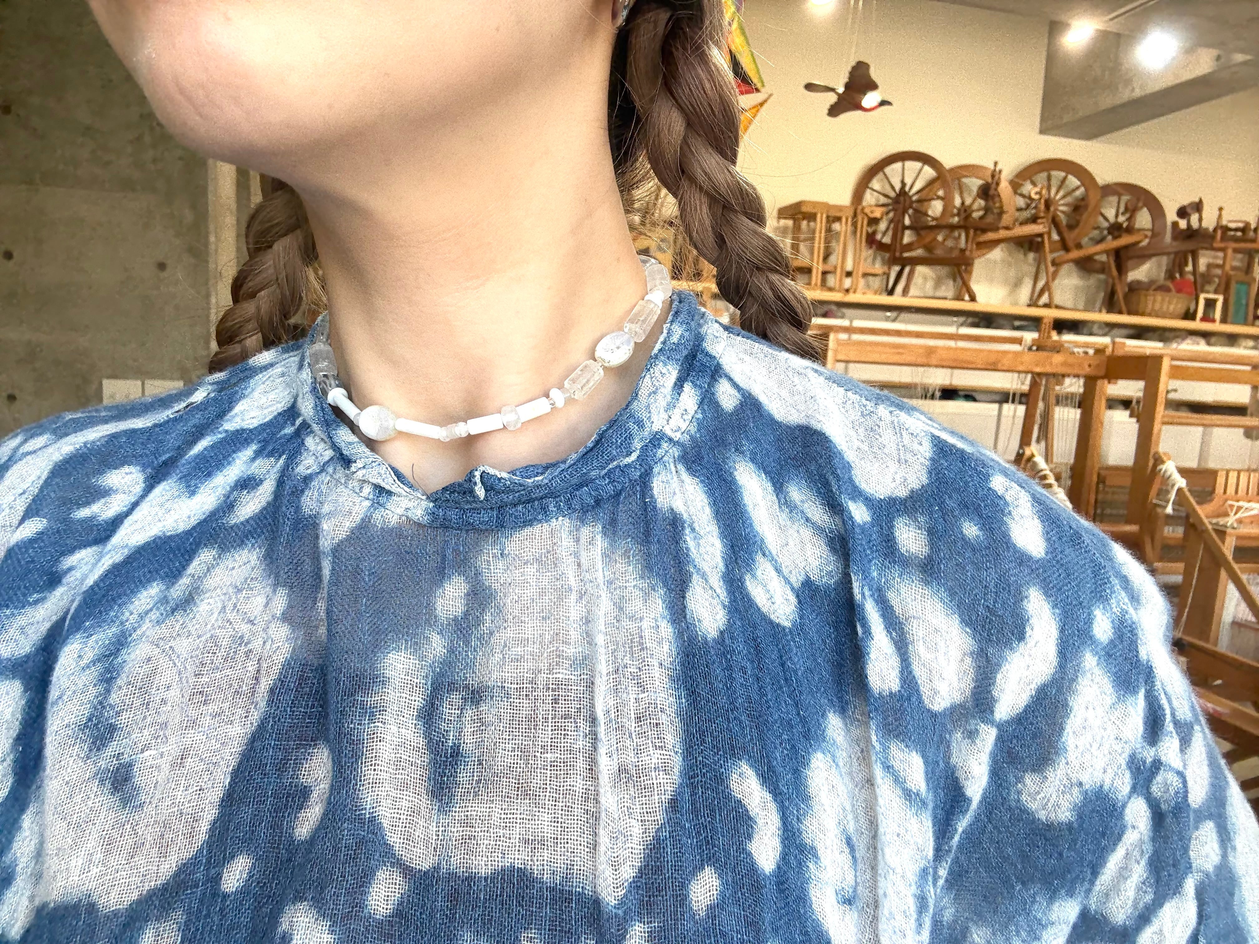 ゴロゴロ天然石や貝ビーズ、だけど格好良すぎず、udutextilらしい遊び心を持った色合わせと形をチョイスした、いまの私の気分なネックレスです。