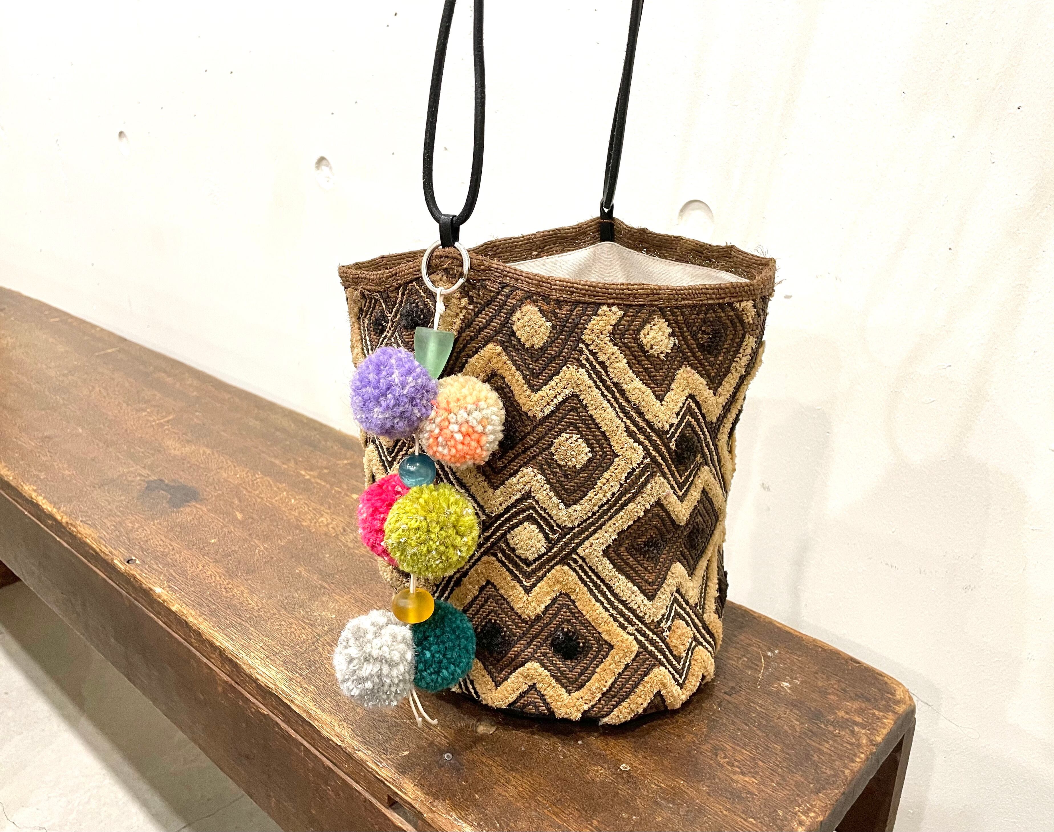カラフルな毛糸に海外の涼しげなアンティークビーズをあしらうことで、どのシーズンでも使いやすく、付けたものは華やかな印象を纏うことのできる、おしゃれワンポイントにはもってこいの優秀なチャームです。